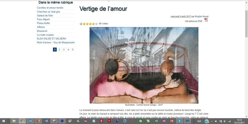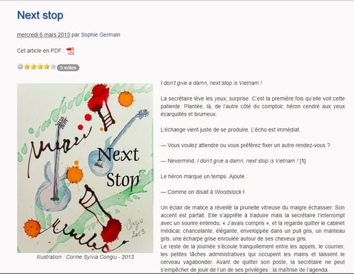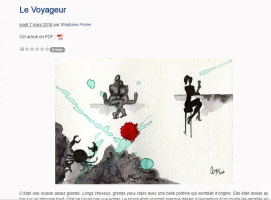 En qualité de membre du comité de lecture, toutes les nouvelles me parviennent dans un premier temps, et je dois, comme mes camarades, donner un avis sur l’éventuelle publication de chacune. A cette occasion, ma posture est totalement celle de l’écrivain. Quand je vote pour une nouvelle c’est à cause de ses qualités littéraires, la façon de raconter une histoire courte par les mots, les phrases, leur agencement, leur syntaxe : Le pouvoir d’évocation par l’ingéniosité du langage, l’économie de moyens, l’humour, la bizarrerie, la poésie discrète qui procure l’émotion, l’audace, la singularité, la fantaisie, l’étrangeté, la cocasserie, la rareté, la fraicheur, ou au contraire la dense pesanteur de la tragédie, sont autant d’ingrédients qui agitent mon sismographe intérieur tout au long de la lecture, et qui me feront espérer ardemment que la chute, cette fameuse chute, ne déçoive pas.