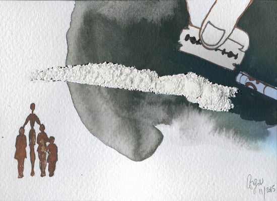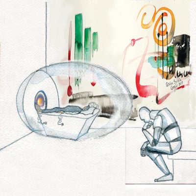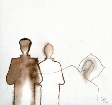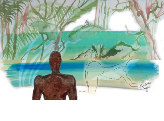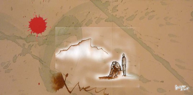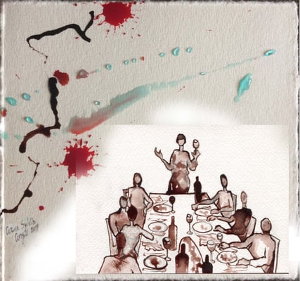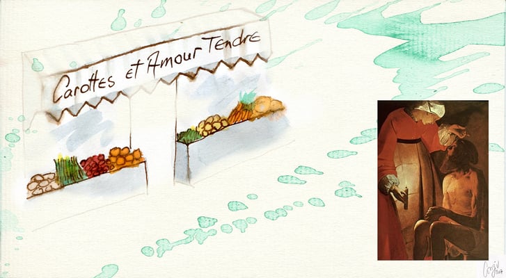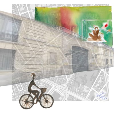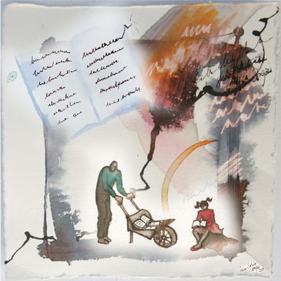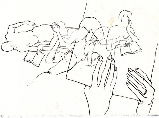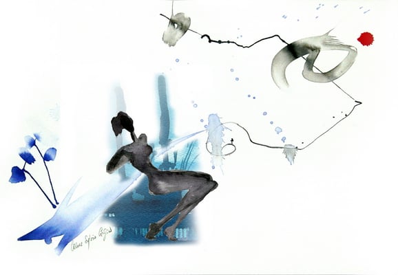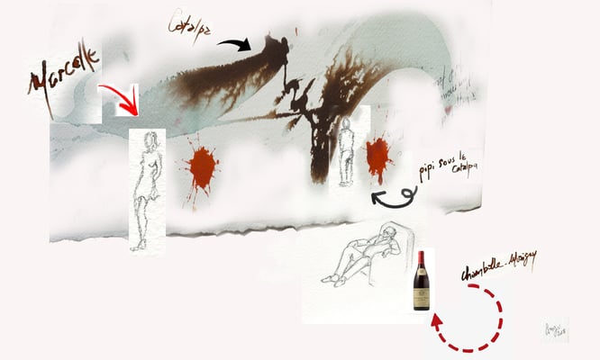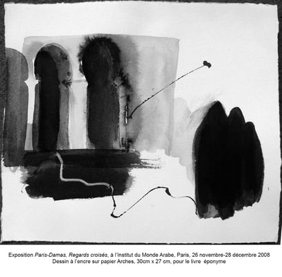 2) Dessin pour le livre Paris-Damas, Regards croisés, réalisé pour les Expositions à l'Institut du monde Arabe 2008 et au Musée National de Damas, Syrie 2009