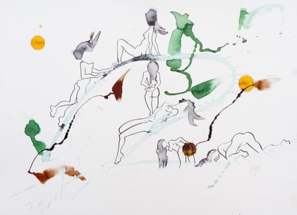 My canvas is an open space where a scene is performed by abstract figures* who have an energy, a path, a role within actions that form a "dramaturgie".
