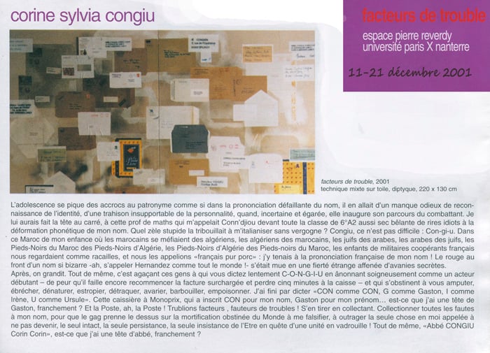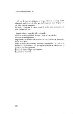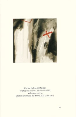 Le tableau, Sans titre, de Corine Sylvia Congiu –reproduit en couverture– fut choisi en fonction de multiples raisons. Je l’ai découvert en 1987 et, doucement, il pénétra ma mémoire. Lors de l’écriture de cet ouvrage, un jour, ce tableau resurgit. Ses formes et ses contenus correspondaient à mon projet de création d’un laboratoire, à sa conception même. Il fixait l’idée de convergencefondatrice de la recherche.