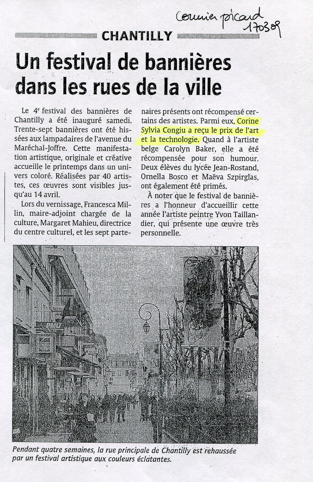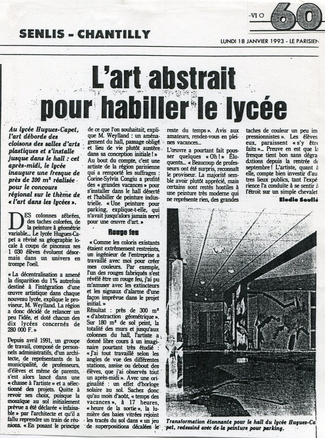 Je n’ai pas de regrets par philosophie : amor fati. C’est difficile de choisir sa plus grande joie. Peut-être la Commande Publique du Lycée de Senlis, et les deux mois de sa réalisation. A ce propos, je vous propose la photo (en fichier joint) de Patrick Deletoille (à citer SVP) en photographie de 1° page.