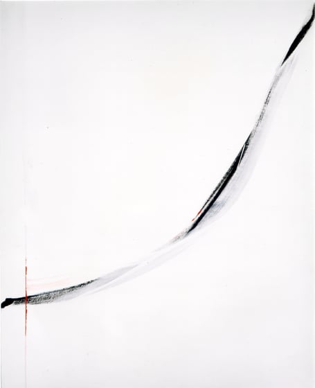 Ce tableau est habité, hanté par cette "présence" dramatisée et exhibée au creux de cet impeccable ordonnancement blanc. Il produit des effets à retardements. Matérialisé par un trait rouge-sang tracé en diagonale par un pinceau scalpel, il provoque le regard, l’interpelle, le met en condition d’aller voir au-dedans la plaie rouge ouverte.