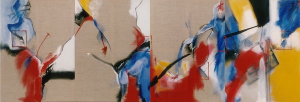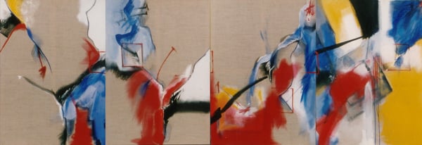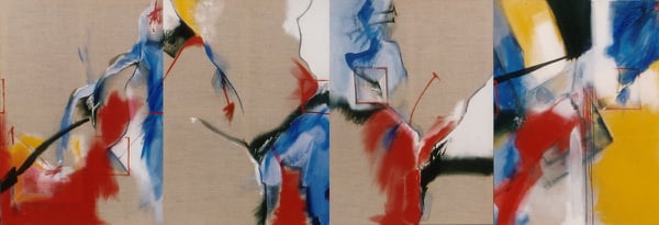 Corine Sylvia Congiu- Quadriptyque modulable, 1993, Acryliques sur toiles, 4 versions