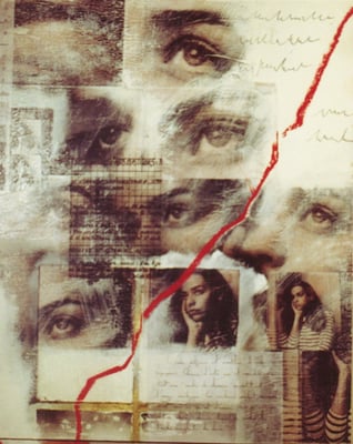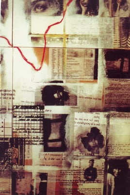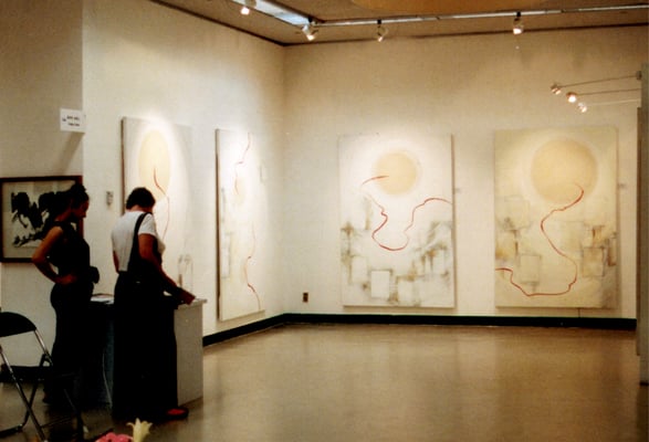 Corine_S_Congiu-2000-Corée - Séoul EXPOSITION MANIF- 6 Tableaux -Acrylique et pigment bronze, pastel gras-195 x 130 cm.