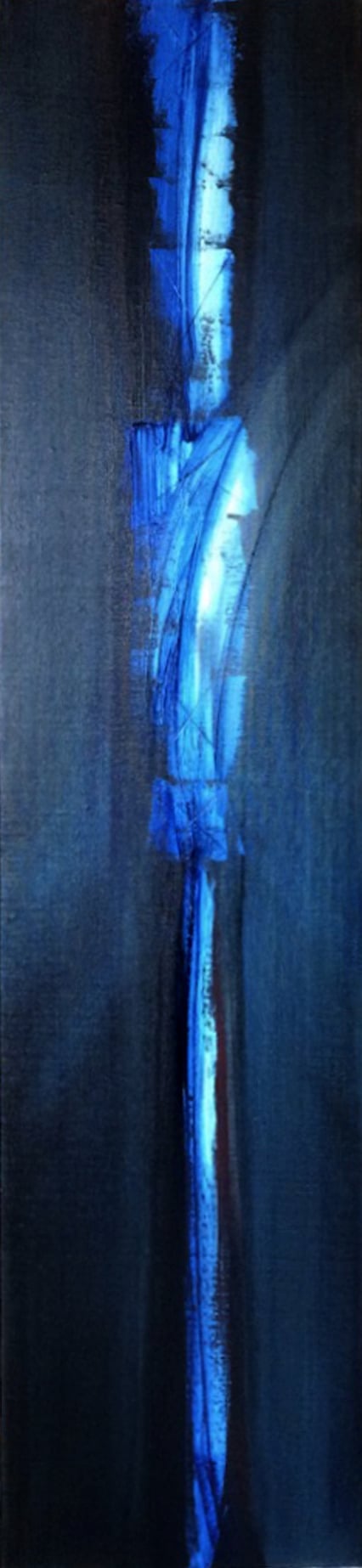 Corine Sylvia Congiu, 2019, TOTEM BLEU, 130 cm x 30 cm, Acrylique et huile sur toile, Collection privée