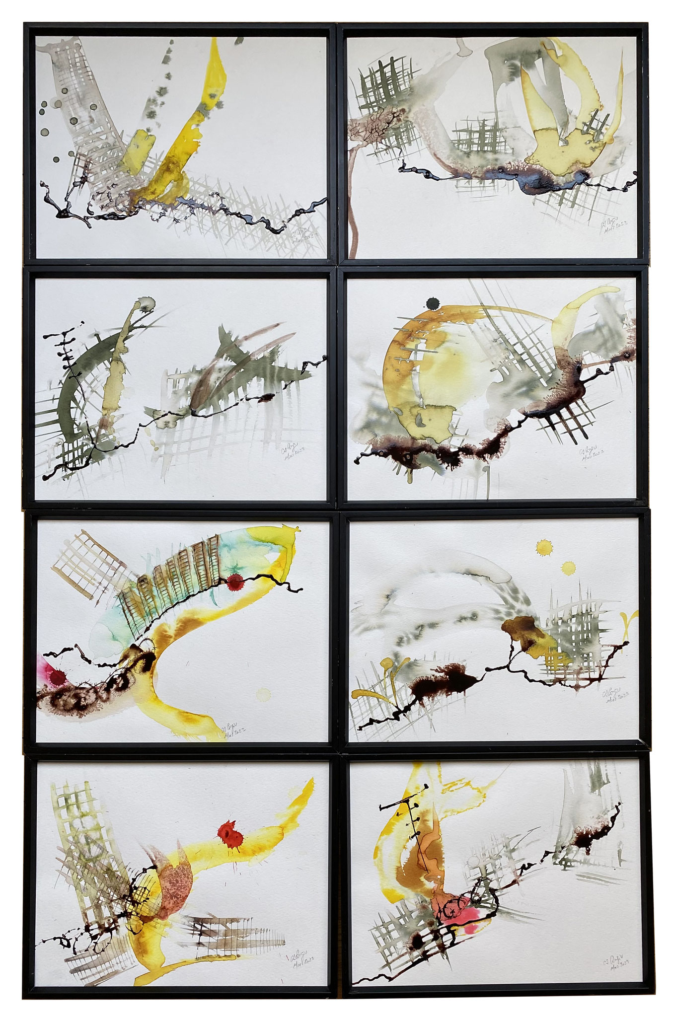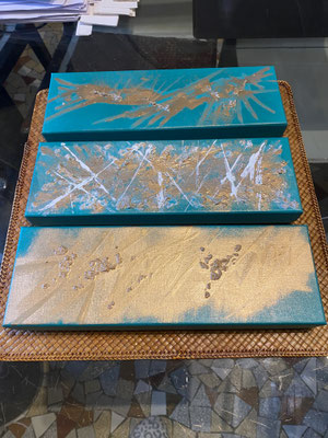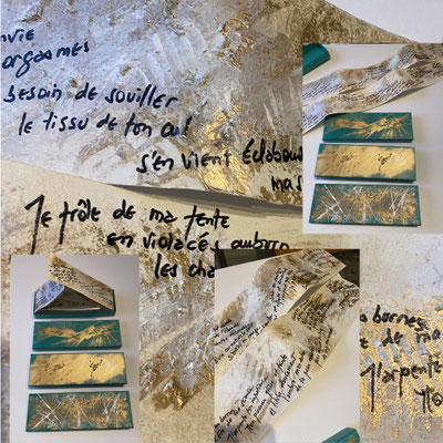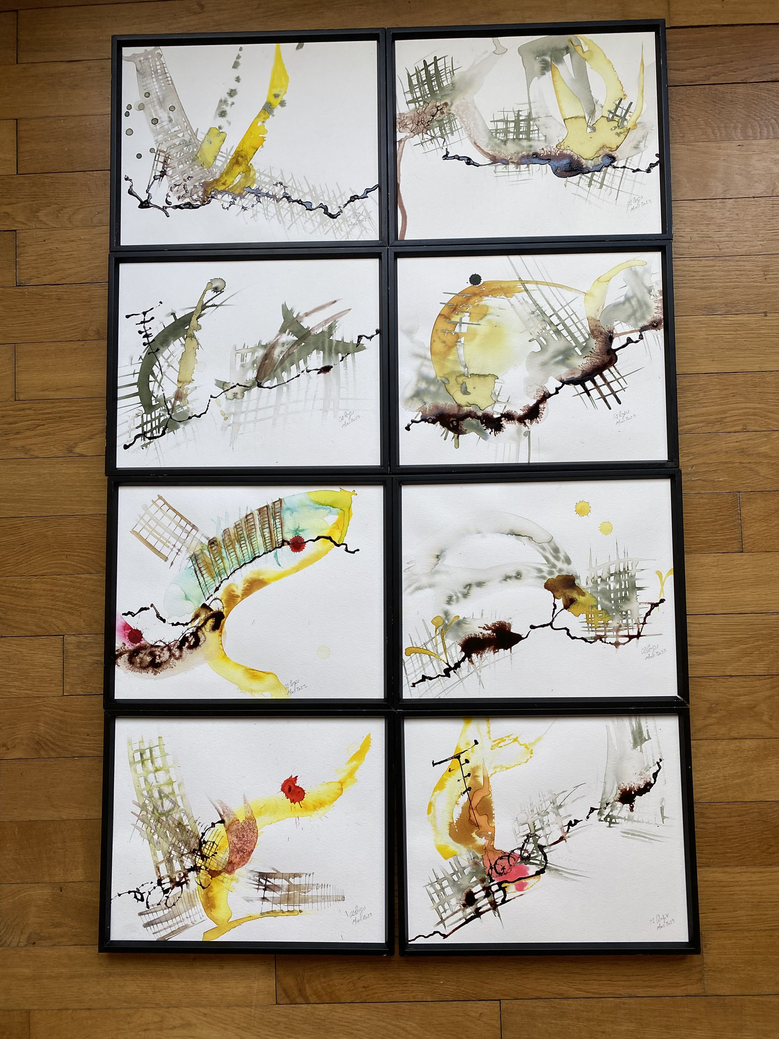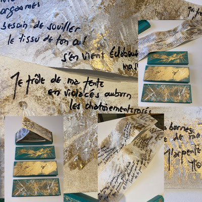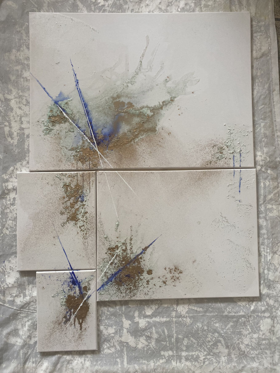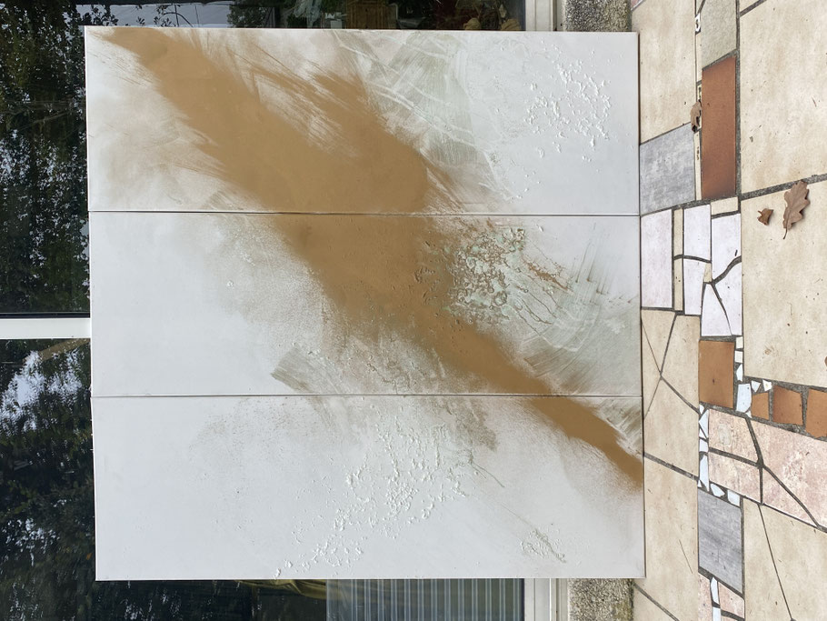 2020-BLANC-BRONZE sur toile écrue- 9 toiles de 61 x 50cm