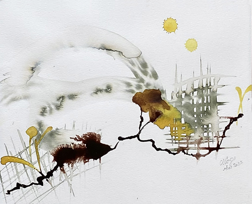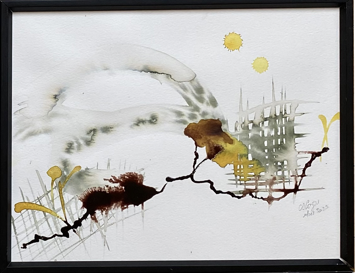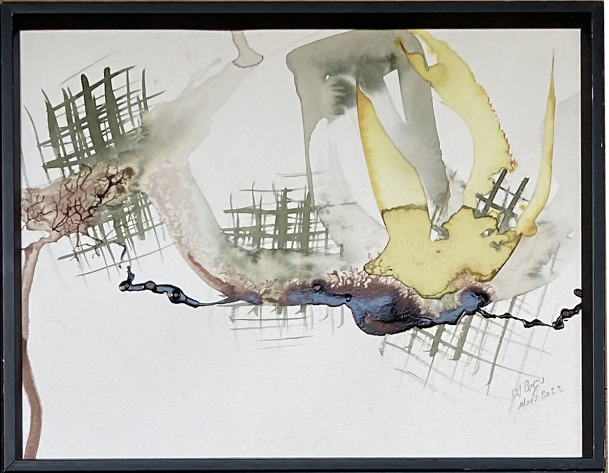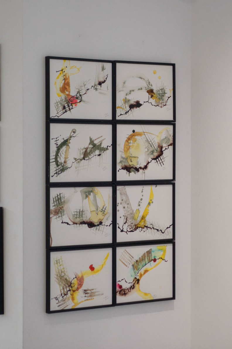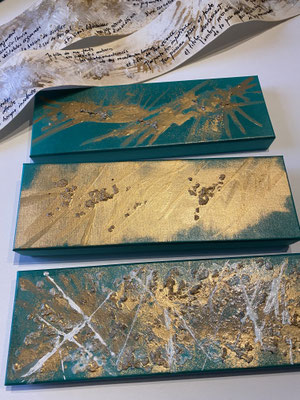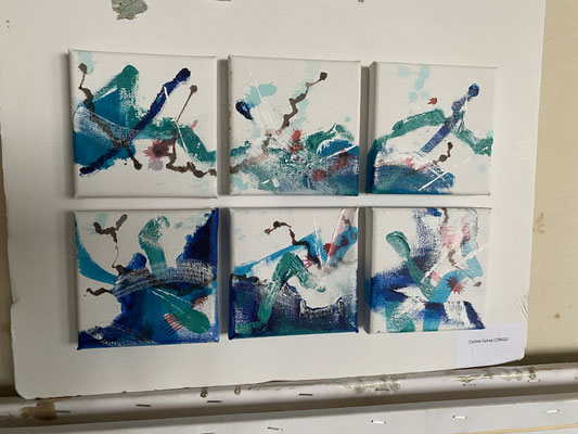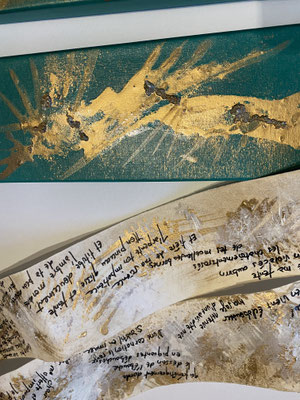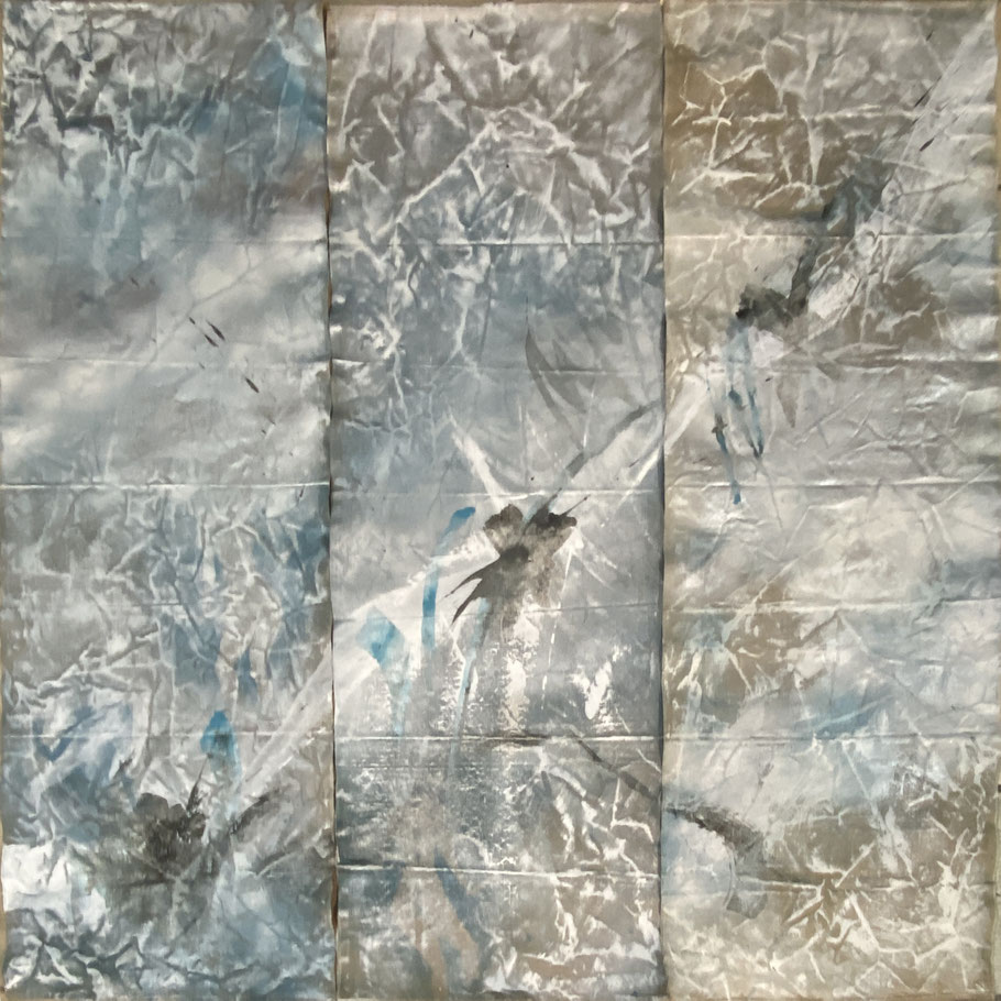 2020-BLANC-BRONZE sur toile écrue- 9 toiles de 61 x 50cm