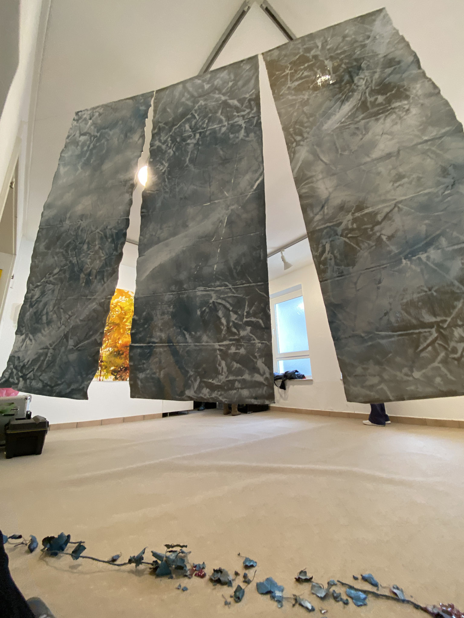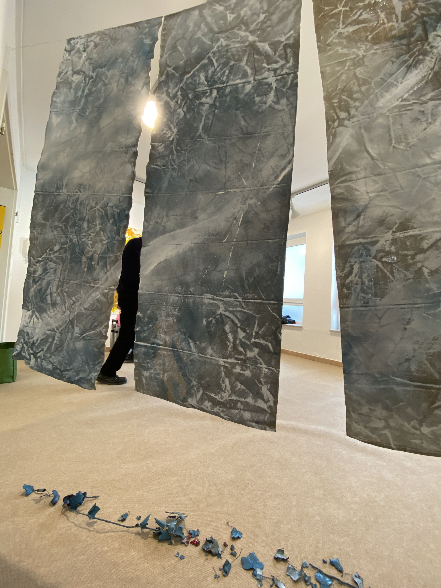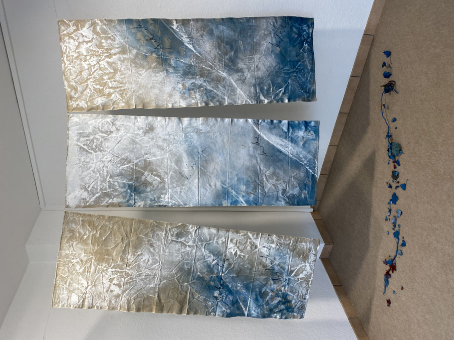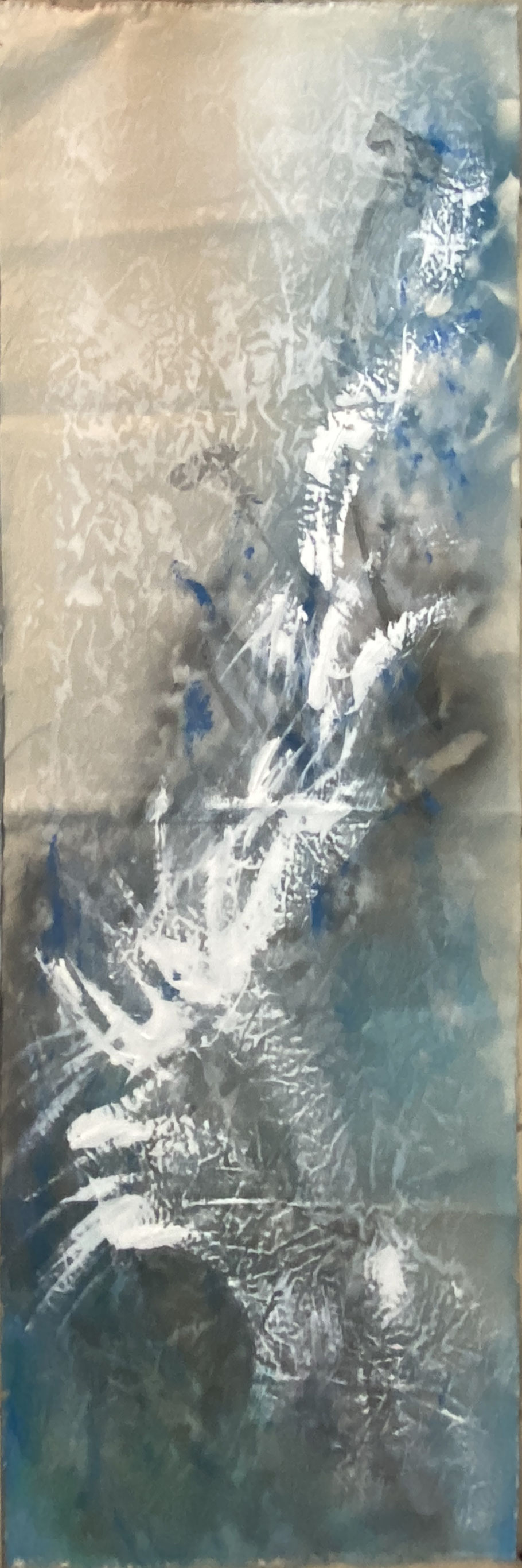 2020, Arbre bleu, mixte sur toile, 150 cm x 50 cm