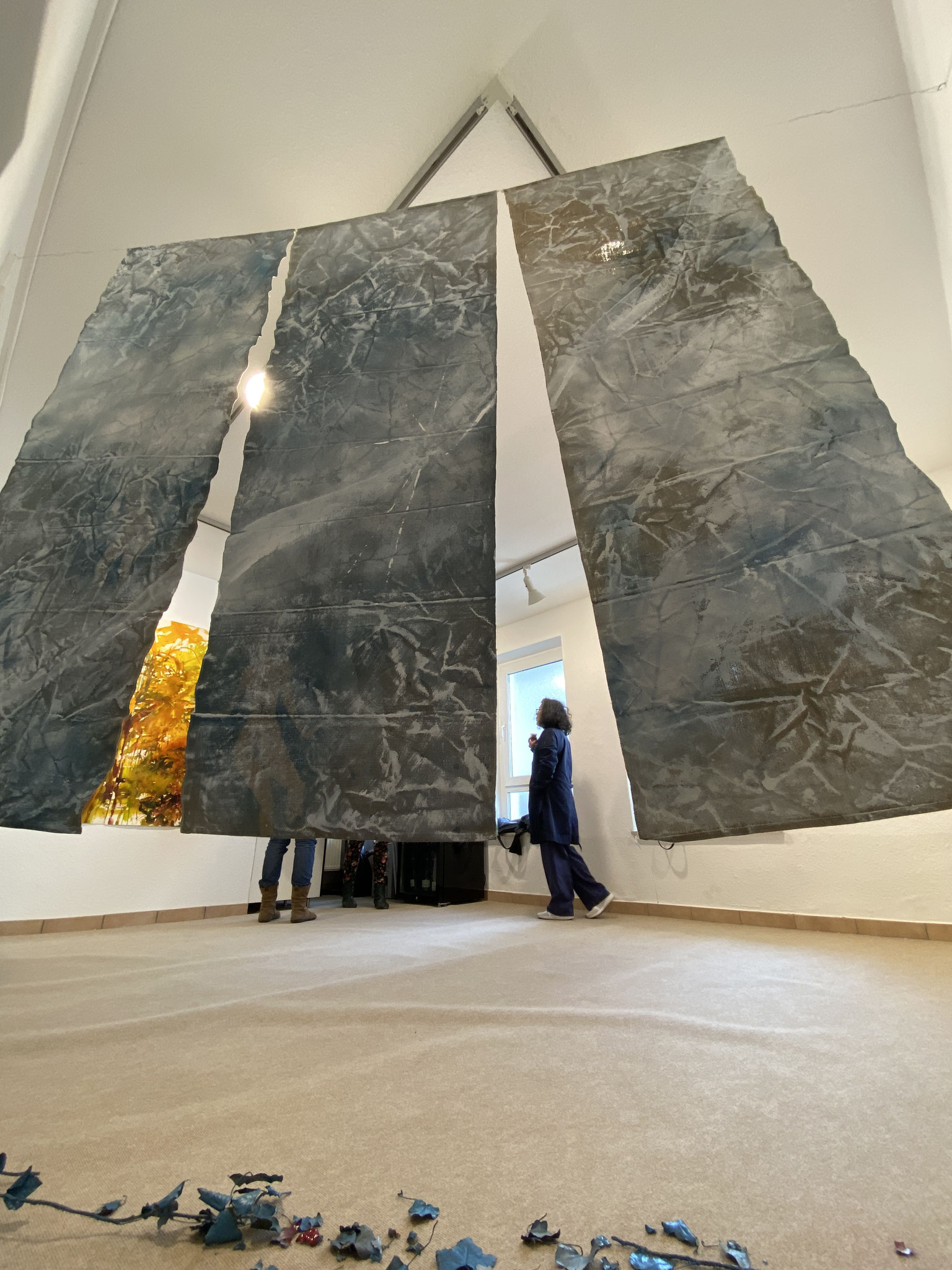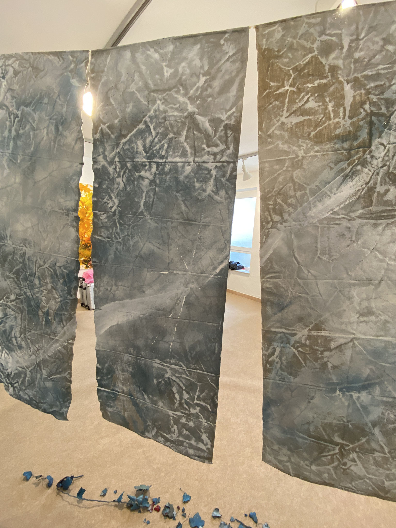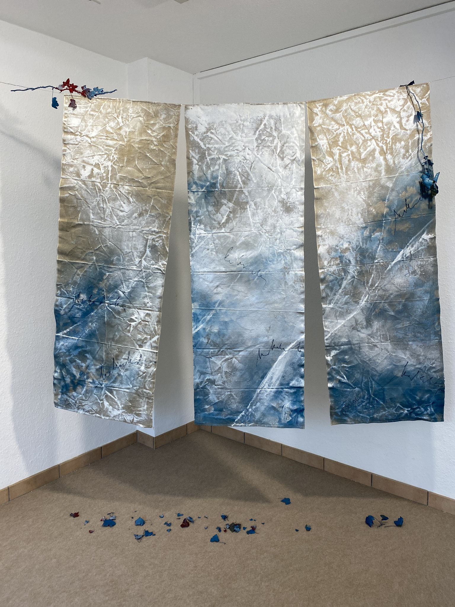 2020, Arbre bleu, mixte sur toile, 150 cm x 50 cm