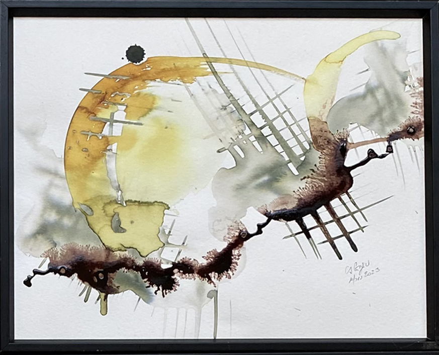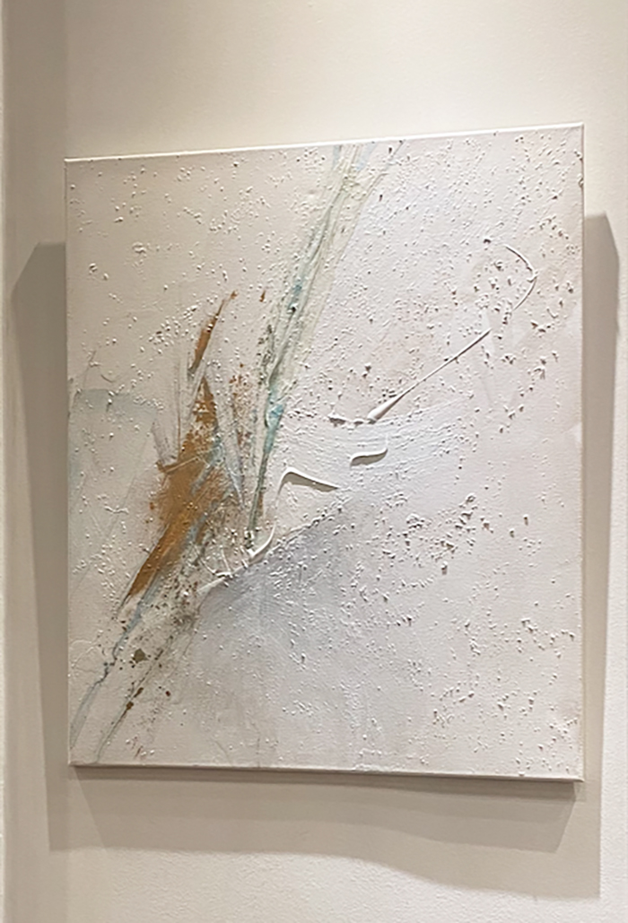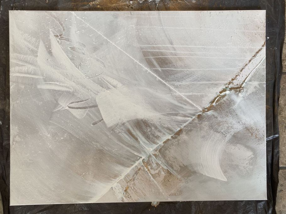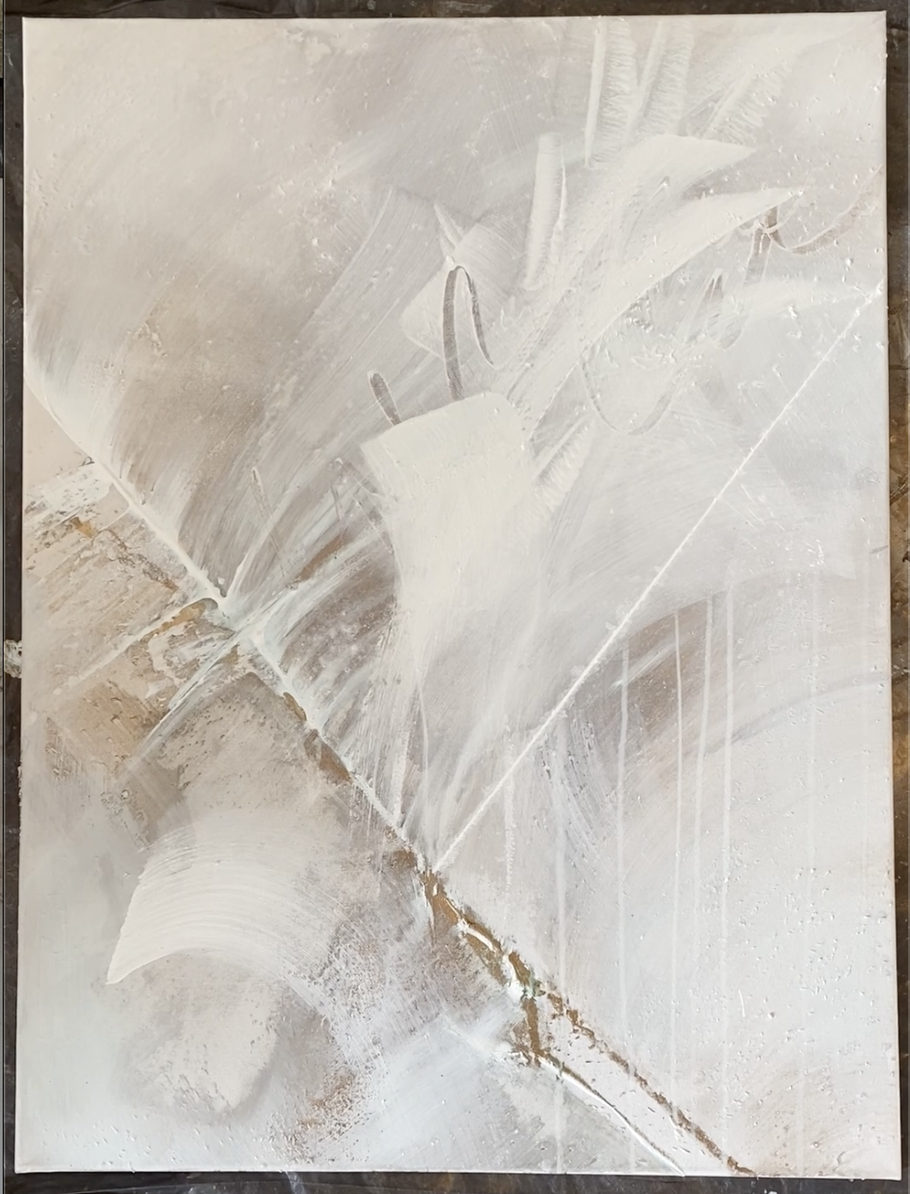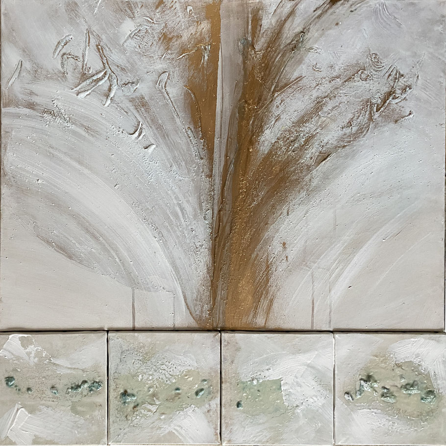 2020 " Blanc et Bronze, 80 cm x 80 cm, acrylique et pigment bronze