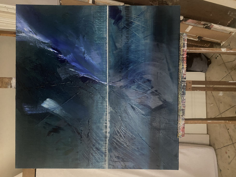 2020, Bleue, Huile sur toile, 100 cm x 100 cm